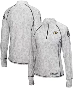 No matter where you watch the next Purdue Boilermakers game, make sure your look is as strong as ever in this OHT Military Appreciation Officer Arctic Camo 1/4-zip jacket. This piece of Colosseum gear features a distinct camo design and the Purdue Boilermakers logo is proudly displayed on the chest. Sport this over your go-to team tee for a complete look you will be proud to show off this season.