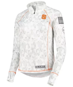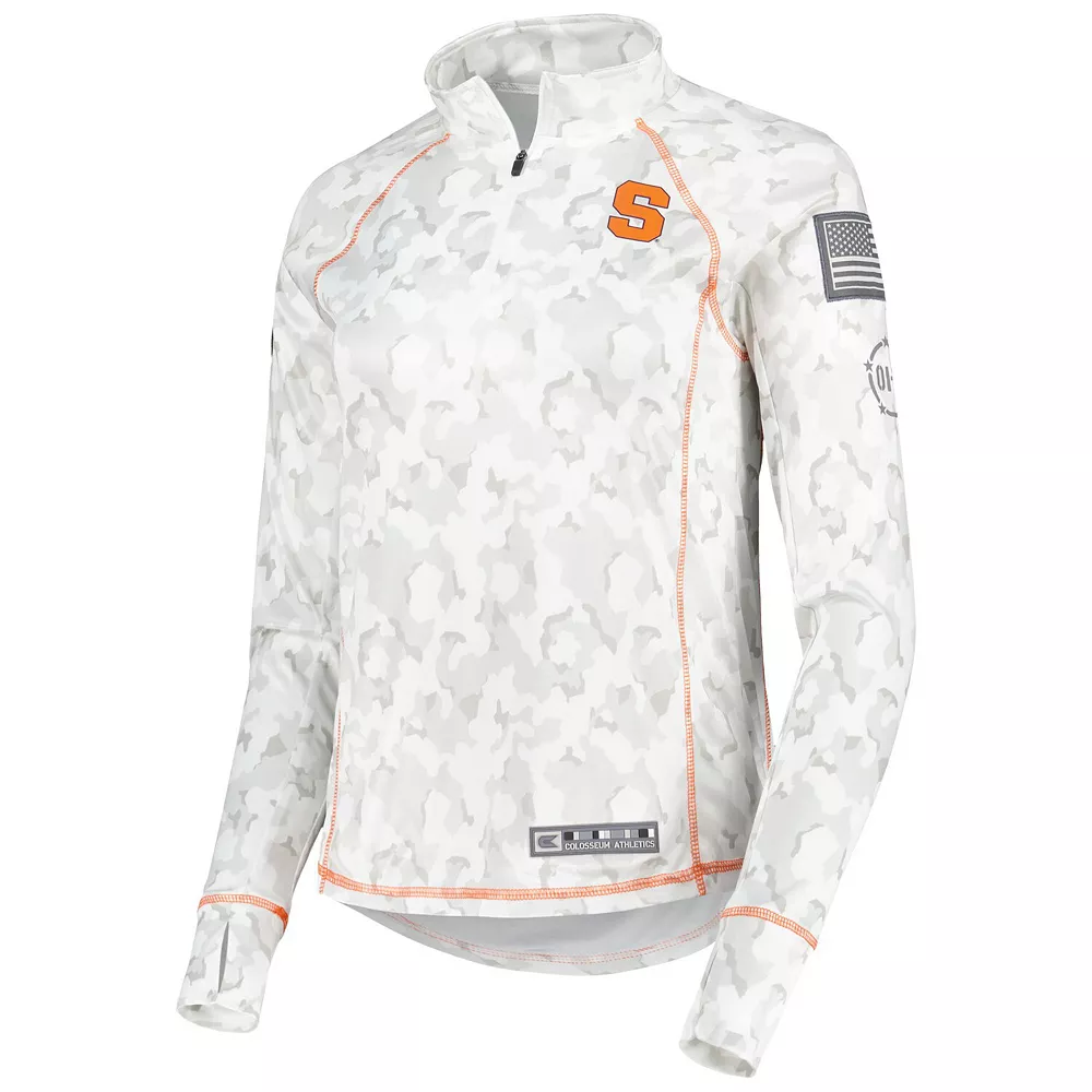 No matter where you watch the next Syracuse Orange game, make sure your look is as strong as ever in this Operation Hat Trick Military Appreciation Officer Arctic Camo quarter-zip jacket. This piece of Colosseum gear features a distinct camo design and the Syracuse Orange logo is proudly displayed on the chest. The raglan sleeves give you more maneuverability, and the contrasting trim adds a touch of color to an already stylish piece.