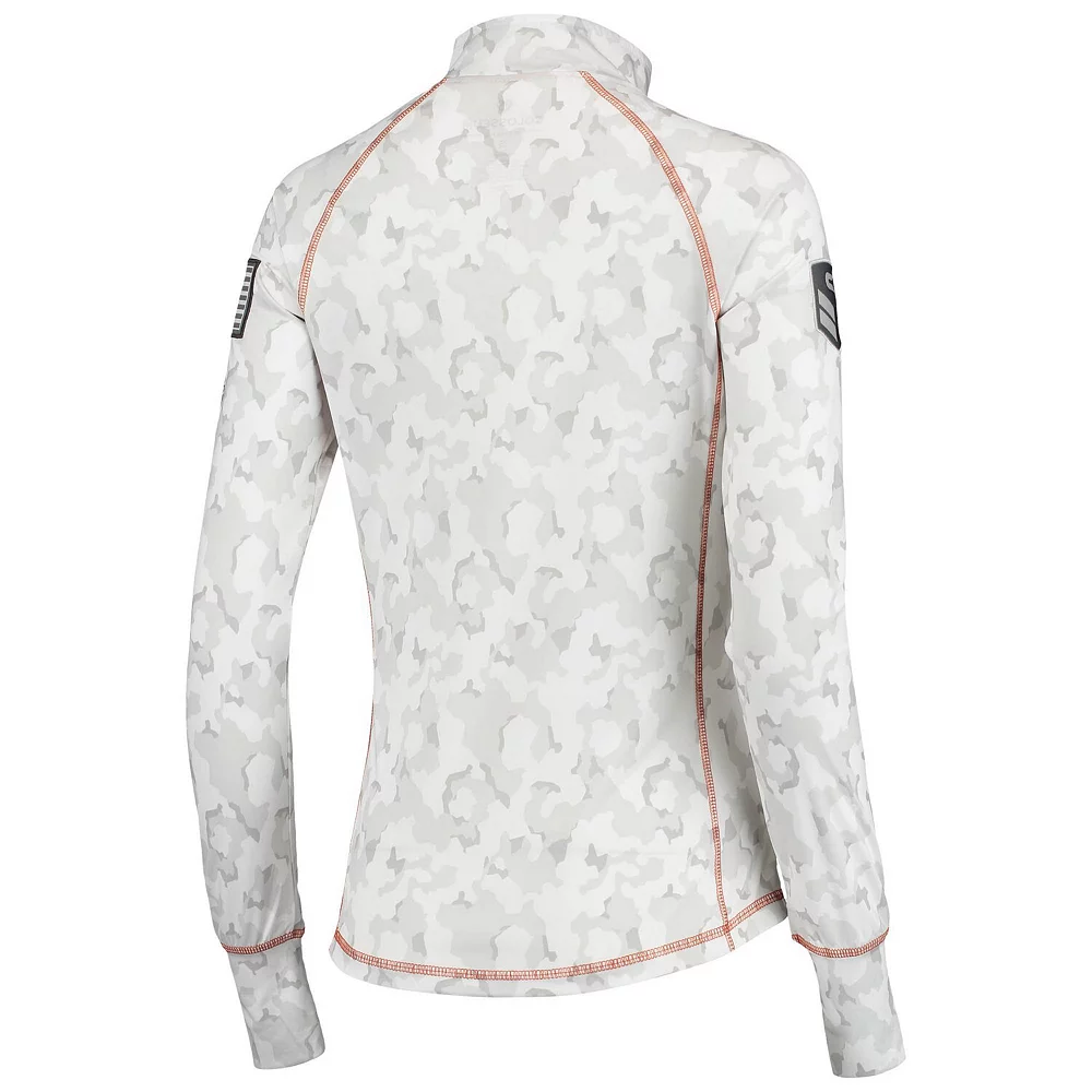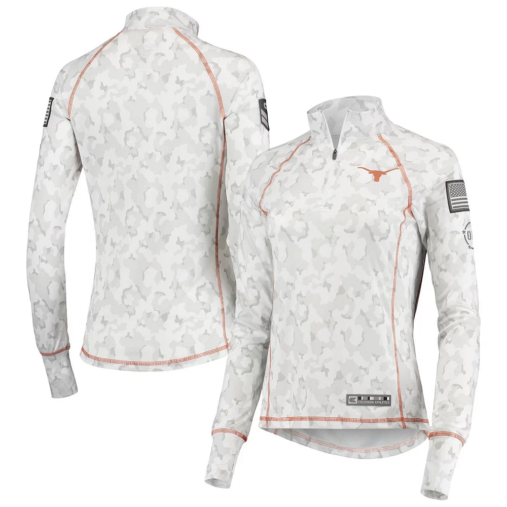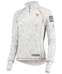 No matter where you watch the next Texas Longhorns game, make sure your look is as strong as ever in this OHT Military Appreciation Officer Arctic Camo 1/4-zip jacket. This piece of Colosseum gear features a distinct camo design and the Texas Longhorns logo is proudly displayed on the chest. Sport this over your go-to team tee for a complete look you will be proud to show off this season.