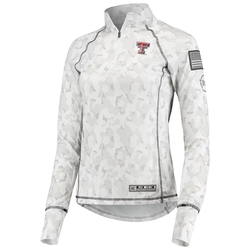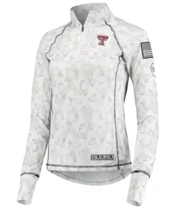 No matter where you watch the next Texas Tech Red Raiders game, make sure your look is as strong as ever in this OHT Military Appreciation Officer Arctic Camo 1/4-zip jacket. This piece of Colosseum gear features a distinct camo design and the Texas Tech Red Raiders logo is proudly displayed on the chest. Sport this over your go-to team tee for a complete look you will be proud to show off this season.