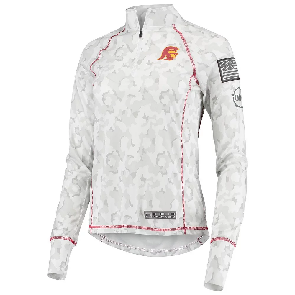 No matter where you watch the next USC Trojans game, make sure your look is as strong as ever in this OHT Military Appreciation Officer Arctic Camo 1/4-zip jacket. This piece of Colosseum gear features a distinct camo design and the USC Trojans logo is proudly displayed on the chest. Sport this over your go-to team tee for a complete look you will be proud to show off this season.
