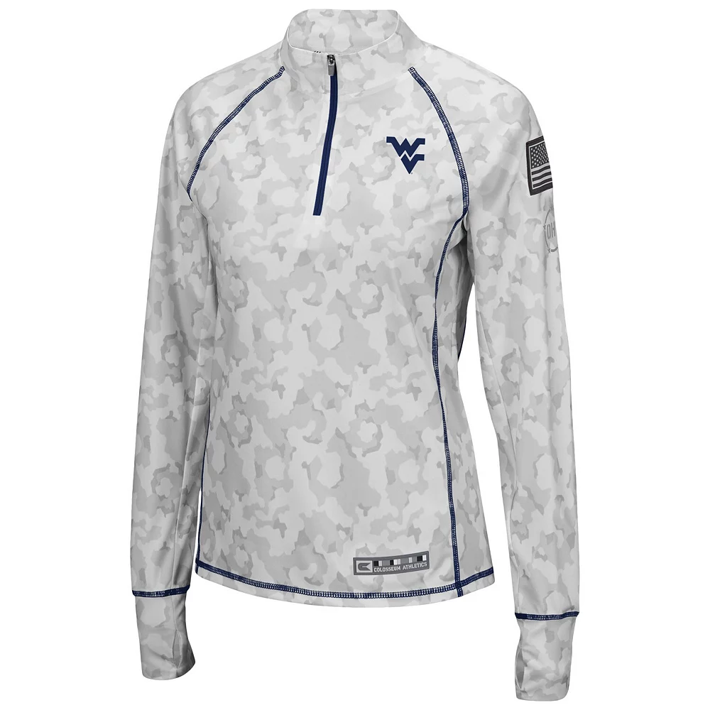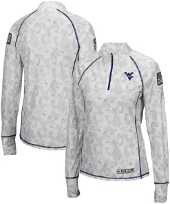 No matter where you watch the next West Virginia Mountaineers game, make sure your look is as strong as ever in this OHT Military Appreciation Officer Arctic Camo 1/4-zip jacket. This piece of Colosseum gear features a distinct camo design and the West Virginia Mountaineers logo is proudly displayed on the chest. Sport this over your go-to team tee for a complete look you will be proud to show off this season.